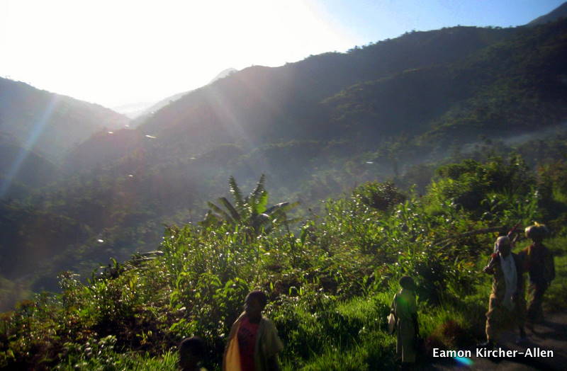 So on the sunny morning of November 30, after a week of generous expats in Kigali (more on that later), I hopped on a little Bujumbura-bound bus in a small garage across the street from the upscale Union Trading Center mall in Kigali. A little more than an hour later, we had passed out of Rwanda and into Burundi. There began a landscape of dizzying heights and greenery, ragged poverty, windswept mountain ridges, rice paddies nestled in mountain valleys full of farmers, villages clinging to life on treacherous slopes, golden light, blue skies and towering cumulus clouds that mimicked the contours of the land. There were mountains folded onto each other, secret hollows and clear streams with bananas, eucalyptus and conifers growing next to them. The people were the poorest-looking I’d seen in East Africa; many looked tired, underfed, and as though they only had one pair of patched and ragged clothes. There were plots of maize in the most improbably of places – in ditches between houses, on hillsides that looked steep or inaccessible.